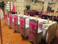 Es perfecto para la celebración de eventos especiales como cumpleaños, bodas, bautizos, primera comunión, comidas de empresa, grupos grandes y más. Dispone de una pequeña tarima para acomodar a los músicos, si se desea contar con un show durante el evento. El salón se encuentra en la parte de abajo del restaurante y cuenta con zona interior y exterior.